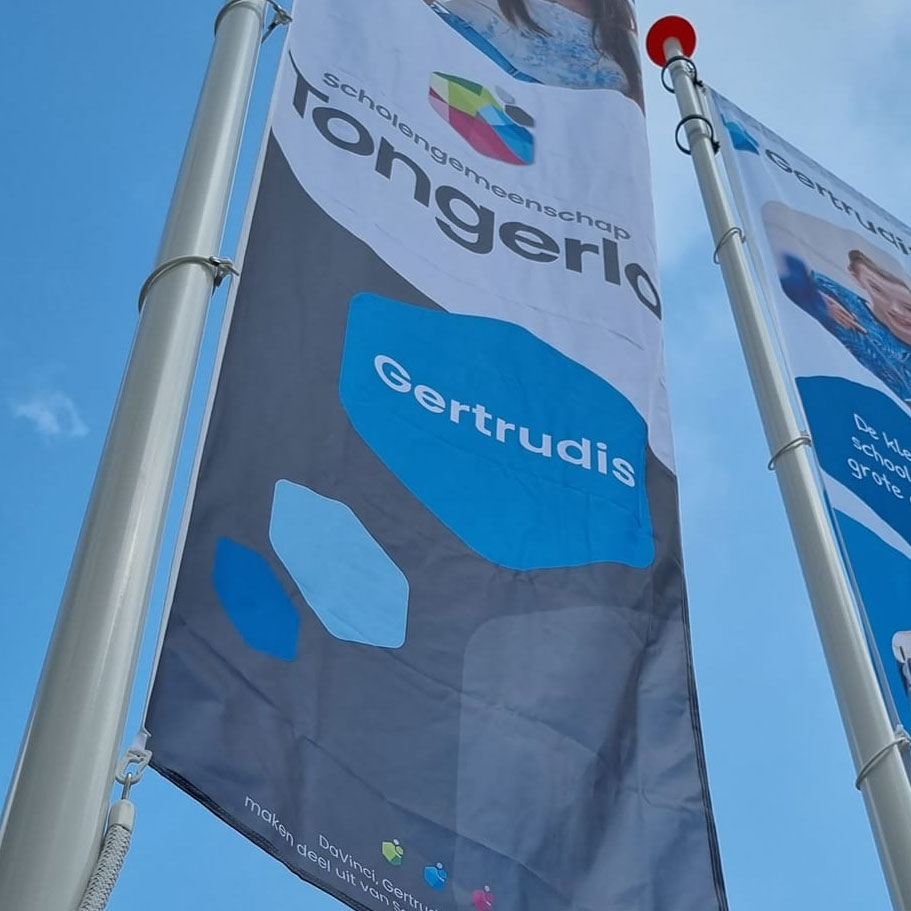 Deze vorm van buitenreclame is niet alleen effectief, maar ook stijlvol en krachtig. Een mastvlag bij Minerva is volledig aanpasbaar, zodat hij perfect aansluit bij jouw huisstijl. Of je nu vlaggen voor een bedrijfspand, evenement of openbare locatie zoekt—onze mastvlaggen laten je merk wapperen en zorgen voor een opvallende, blijvende indruk.